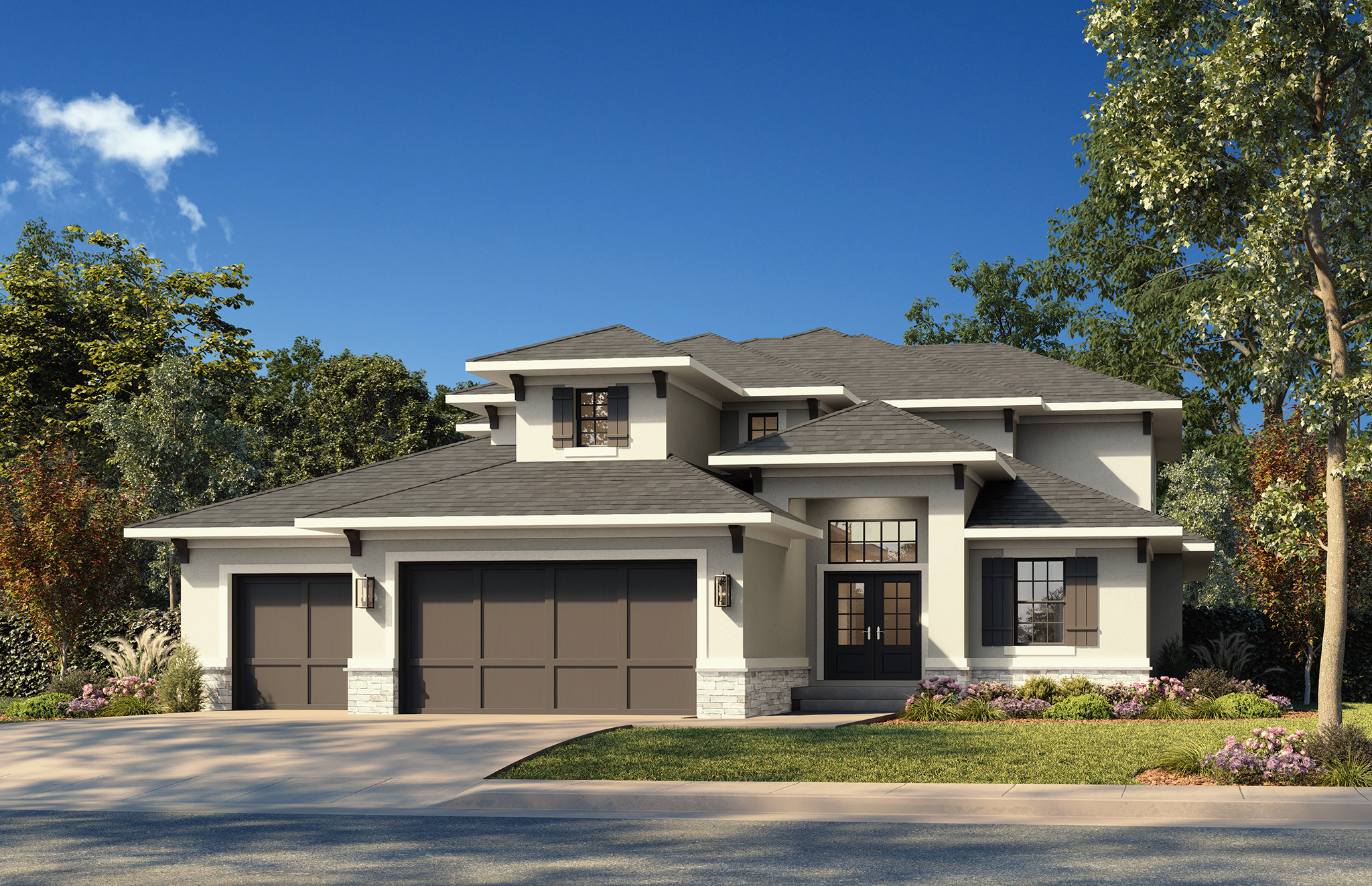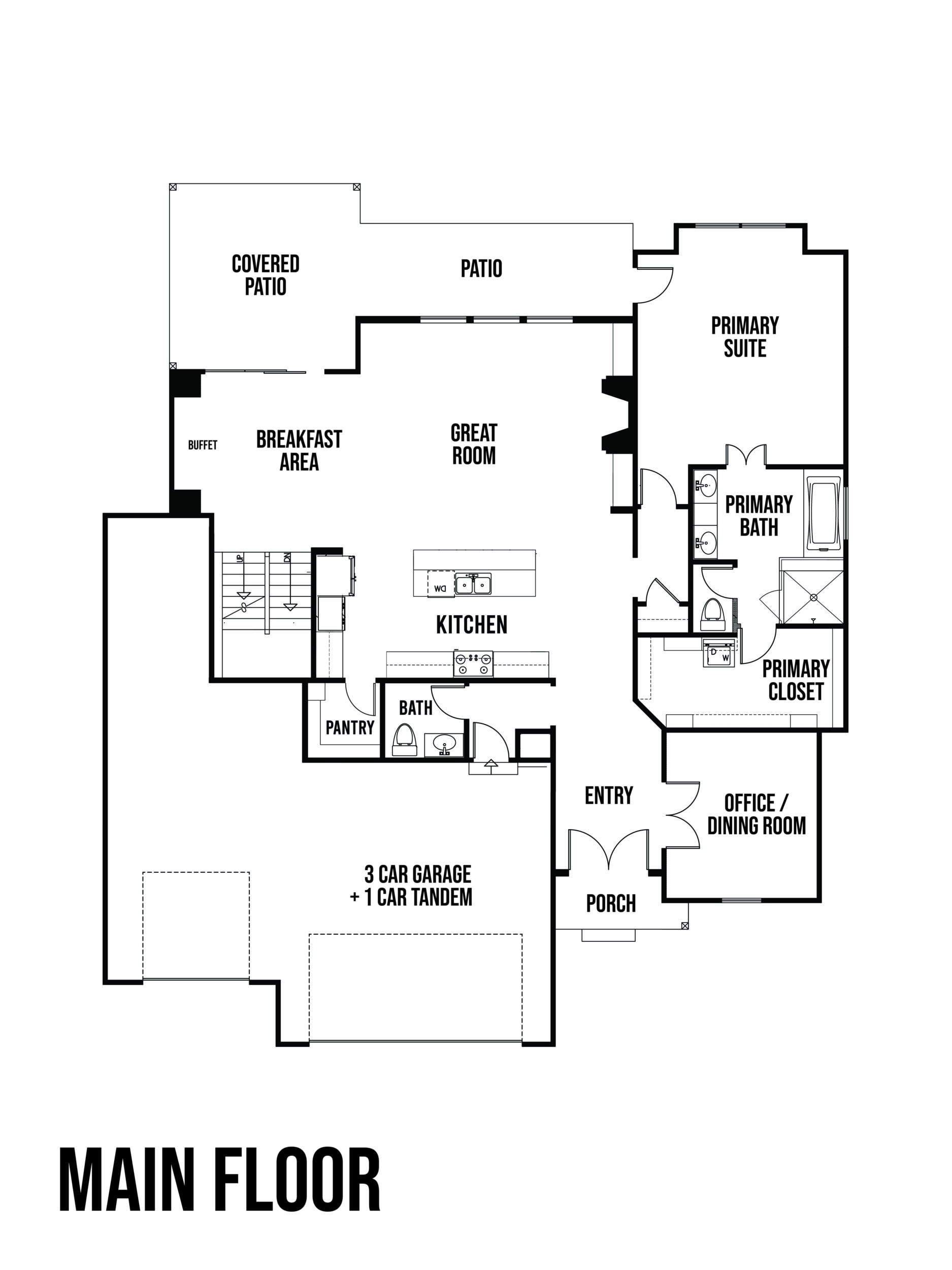 The Rosedale offers everything you could need in a 1.5 story. It's a beautiful multi-purpose home that's great for both entertaining and relaxing. The great room with a 2-story ceiling, expansive windows providing loads of natural light, and a fireplace with built-ins flanking both sides makes a stunning statement. The chef has plenty of room to spread out in the 5-piece chef's kitchen, while the family gathers round the large island. The walk-in pantry adds so much functional space to the kitchen while keeping everything tidy looking. The breakfast nook with a built-in buffet and formal dining room offers additional entertainment spaces. Don't entertain, that's okay, you'll still love using the covered patio to relax and can use the formal dining room as an office instead. At the garage entry is a mud bench to catch clutter and a powder room. The primary suite has a four-piece bath and large walk-in closet with washer & dryer hookups. Upstairs there are three extra bedrooms, each with unique details. The upper level even has its own laundry room on that floor with washer/dryer hook-ups and a utility sink to service that floor. Plus, the extra deep 3-car garage provides room for a 4th vehicle, extra storage or hobby space. Still need more space? Need more space, no problem. You can opt for finishing the basement to add a massive family room with a bar, an additional bedroom and bathroom, which would add another 1,164 sq. ft. of space. Even then you'll still have plenty of unfinished storage space remaining. The possibilities are endless! Click here to see the virtual tour that includes the ability to see the future potential basement finish.