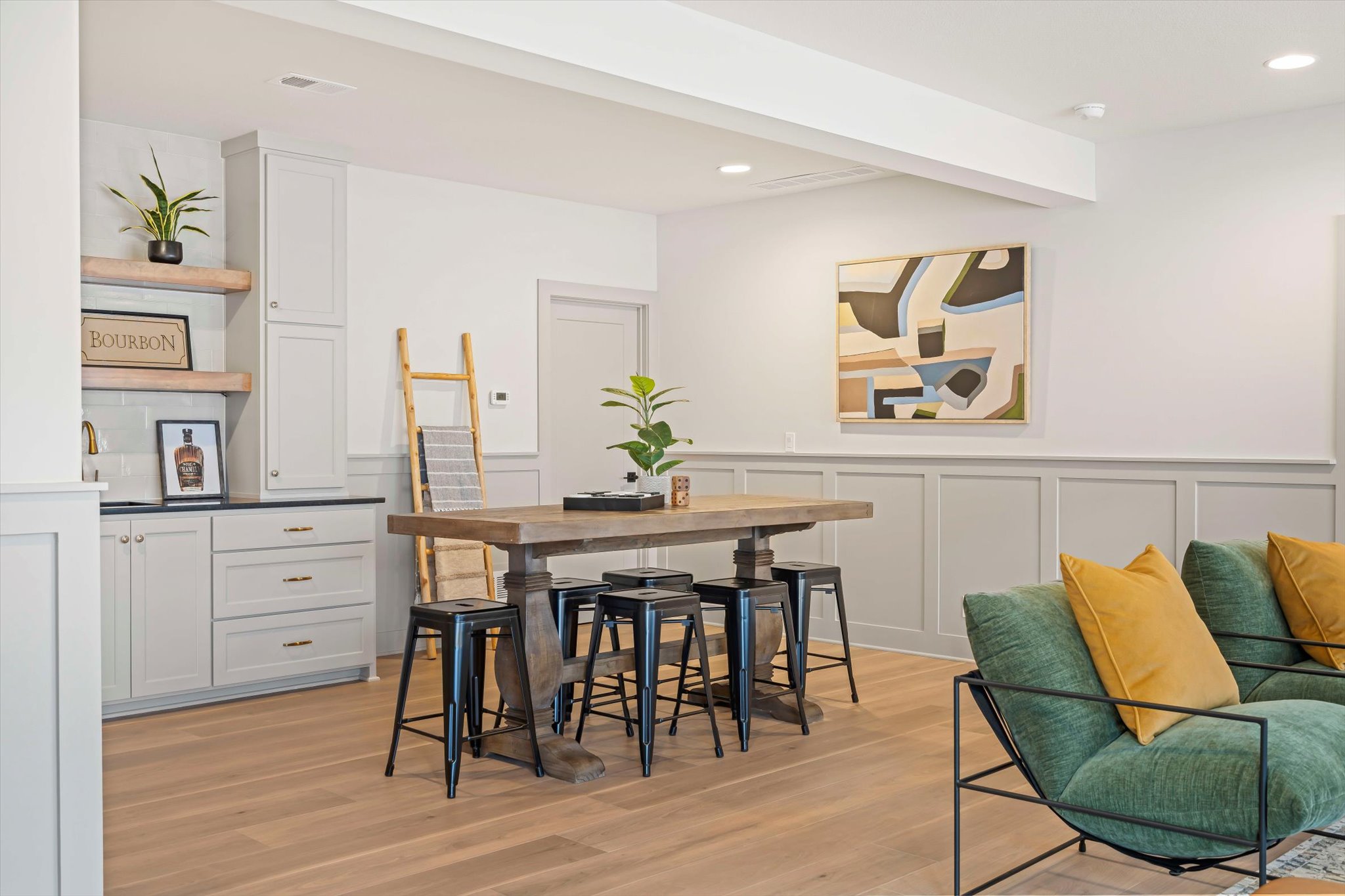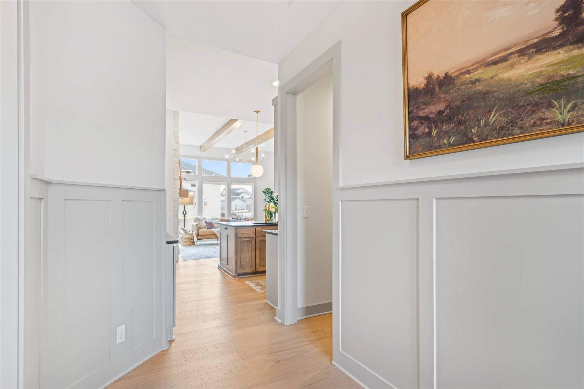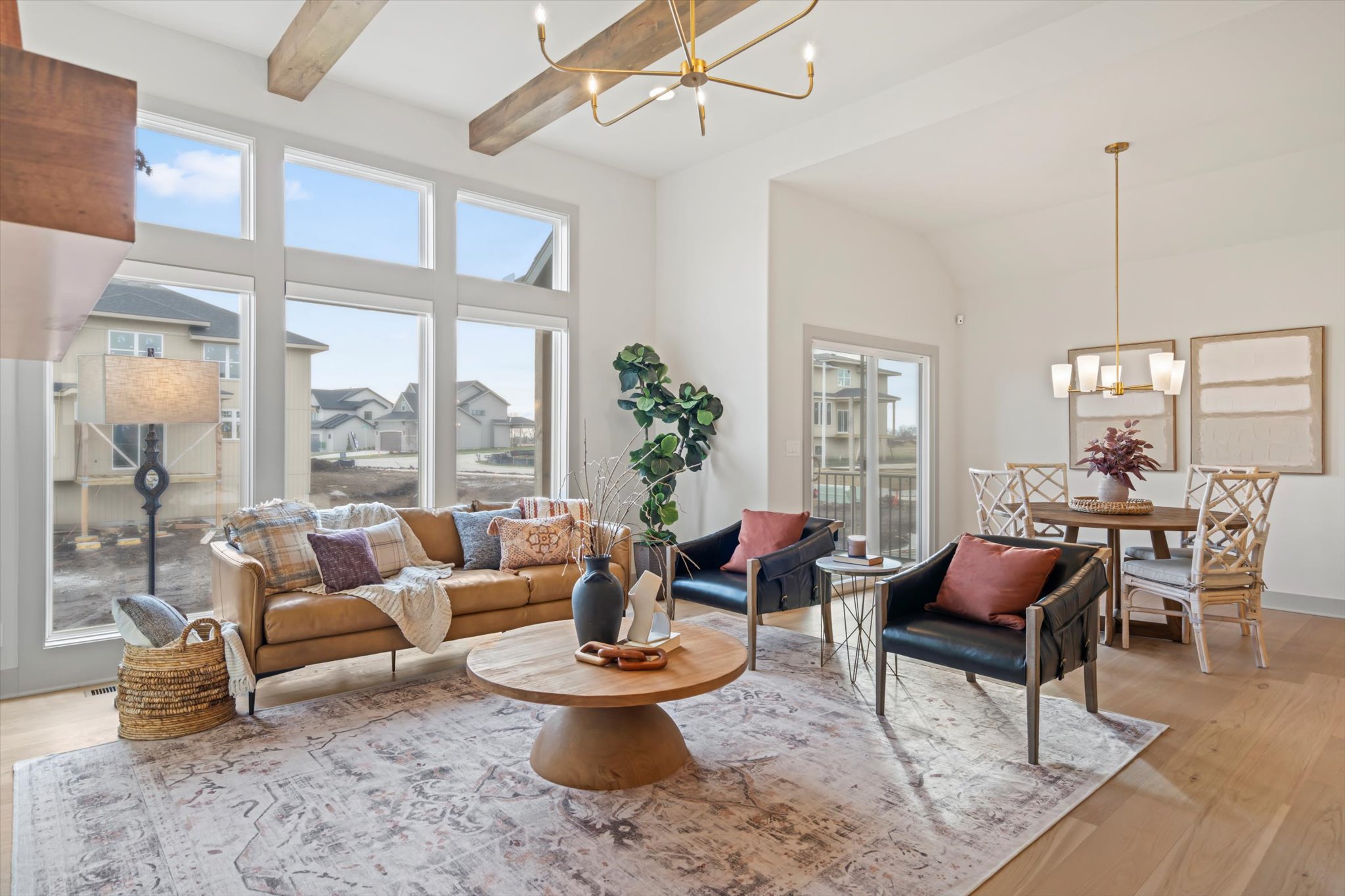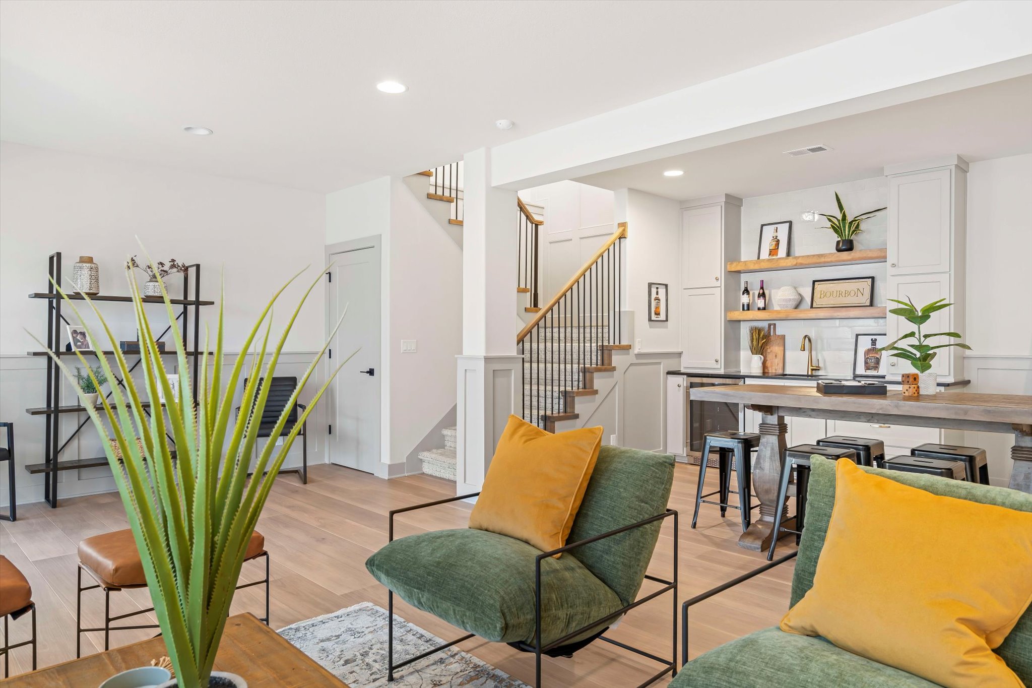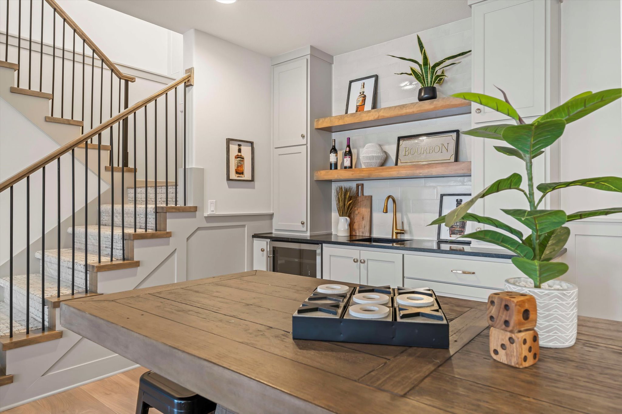 The Sonoma offers generously-sized living spaces and a master bedroom on the main floor. The master suite includes a large walk in closet, two vanities and a fully tiled shower. The great room, kitchen and dining room are all open to one another. Large windows topped with transoms provided ample natural light. A second bedroom and full bath round out the main floor. Downstairs is one more bedroom with a full bath and you can opt to finish a fourth bedroom. A large family room and wet bar make this space perfect for many activities. The Sonoma is also available with a 3-car garage. See that plan and photos here.