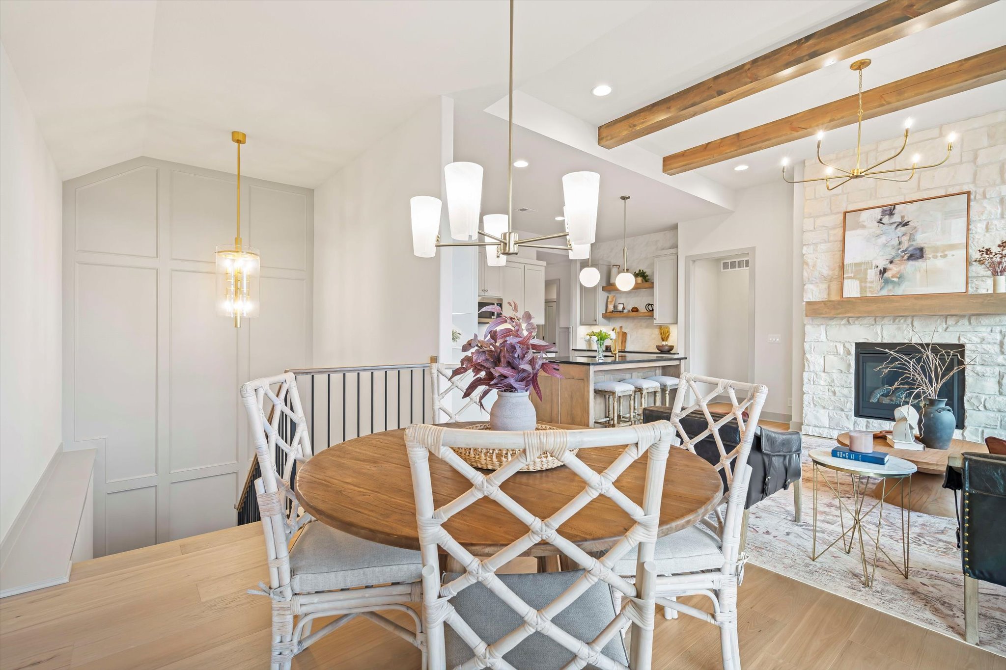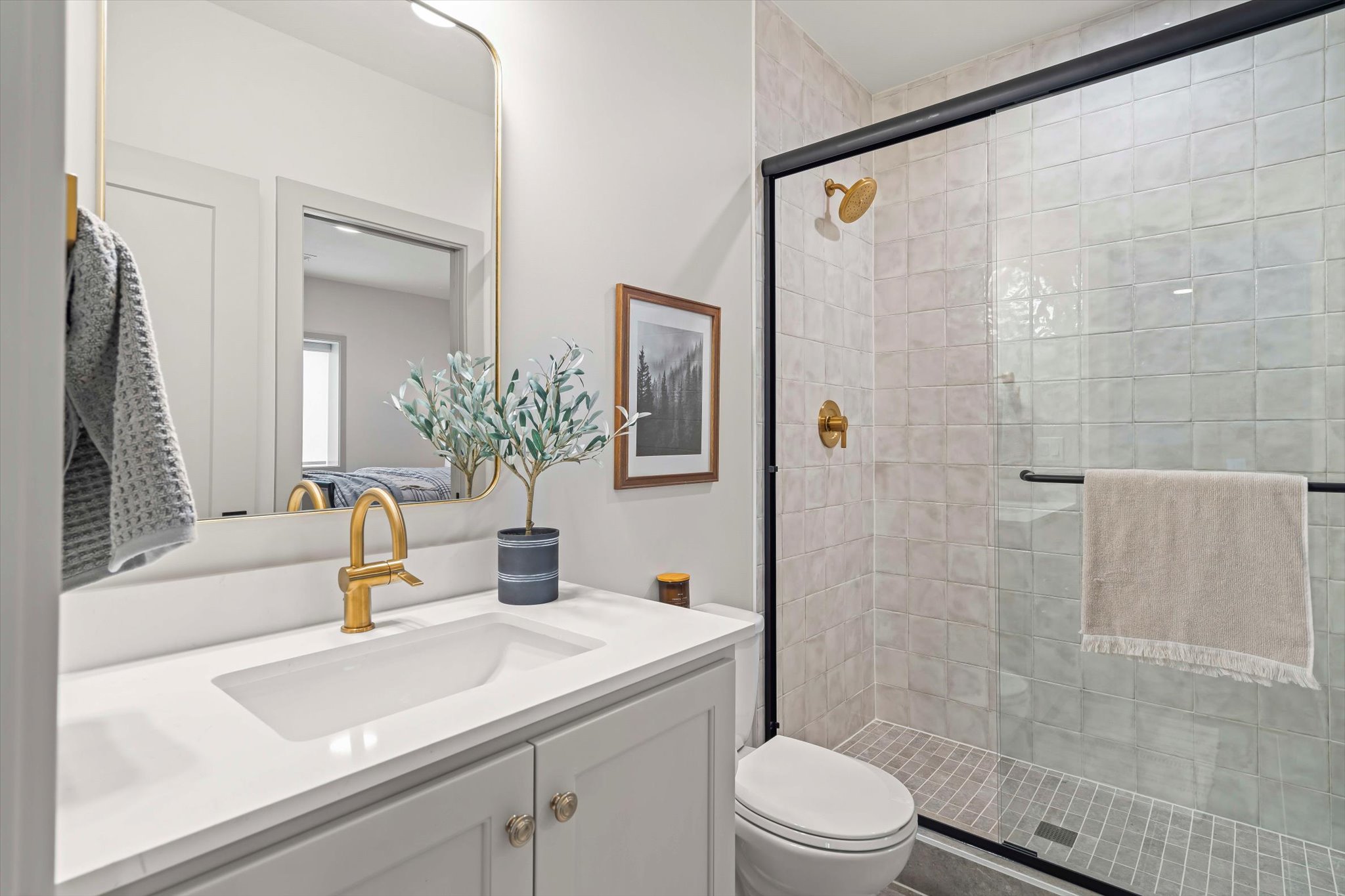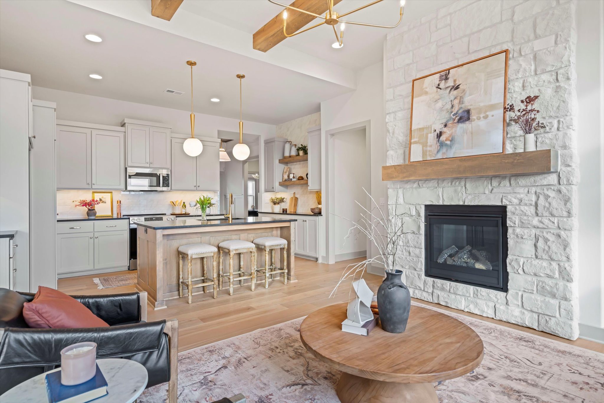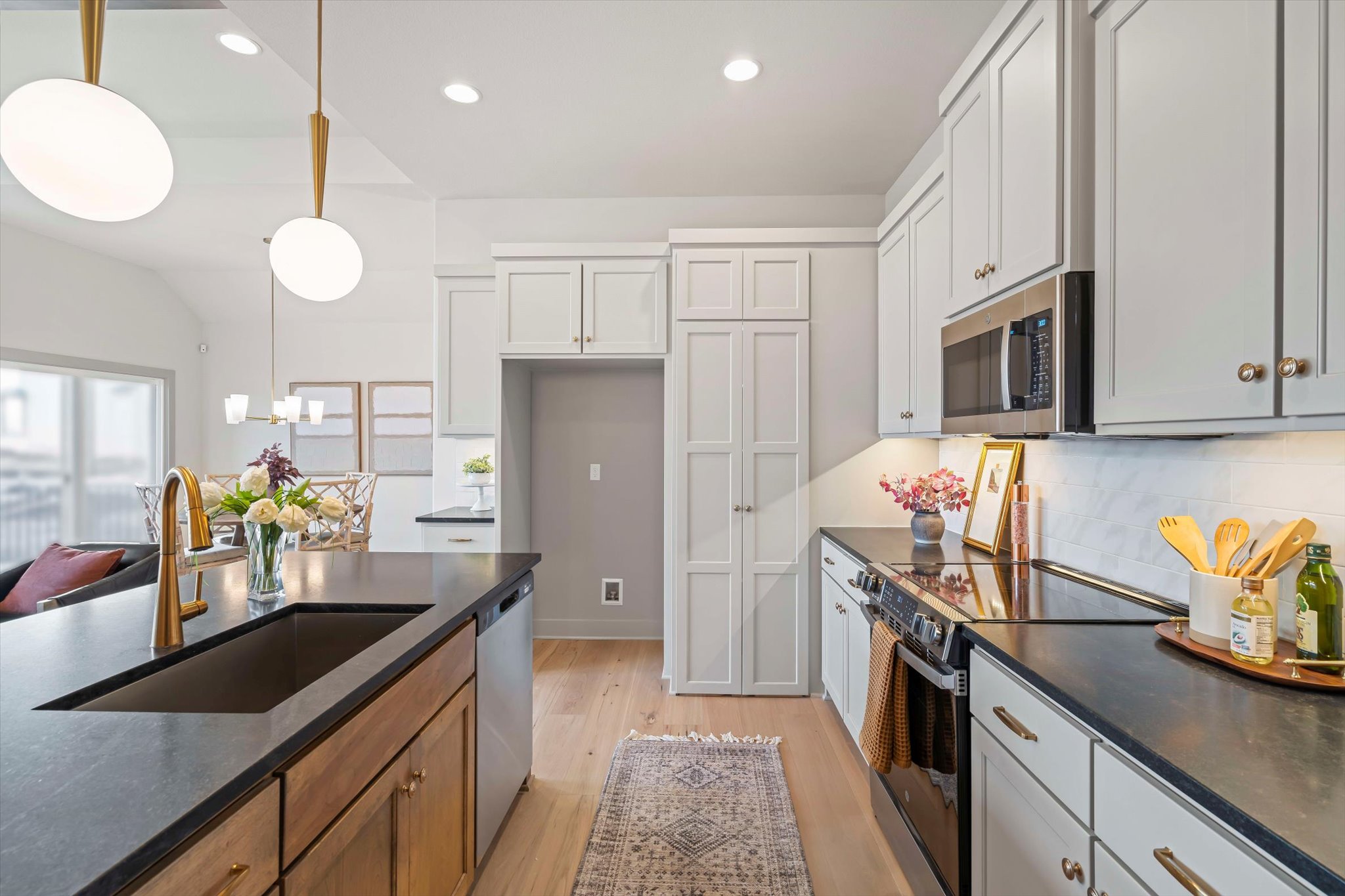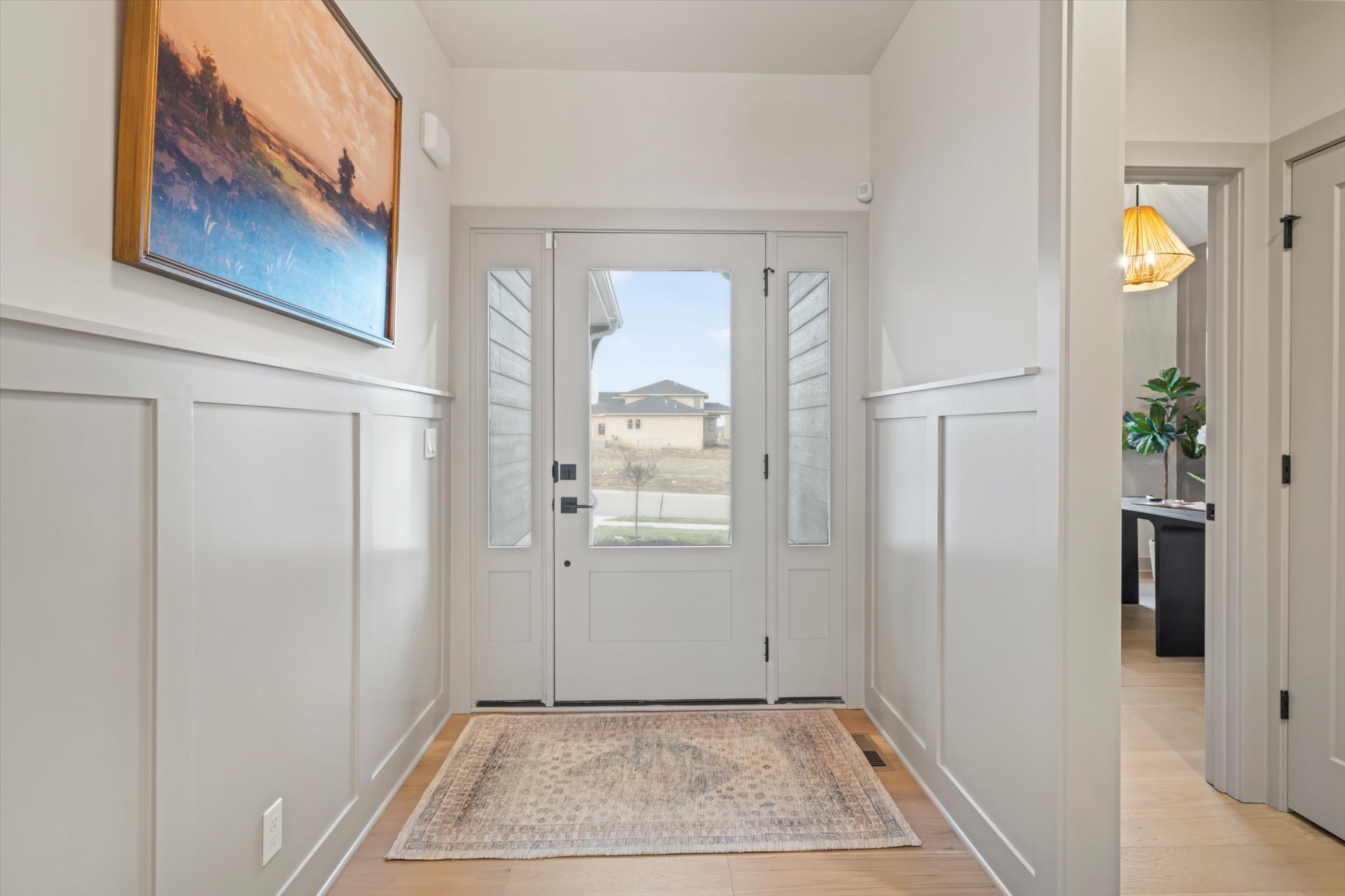 The Sonoma offers generously-sized living spaces and a master bedroom on the main floor. The master suite includes a large walk in closet, two vanities and a fully tiled shower. The great room, kitchen and dining room are all open to one another. Large windows topped with transoms provided ample natural light. A second bedroom and full bath round out the main floor. Downstairs is one more bedroom with a full bath and you can opt to finish a fourth bedroom. A large family room and wet bar make this space perfect for many activities. The Sonoma is also available with a 3-car garage. See that plan and photos here.