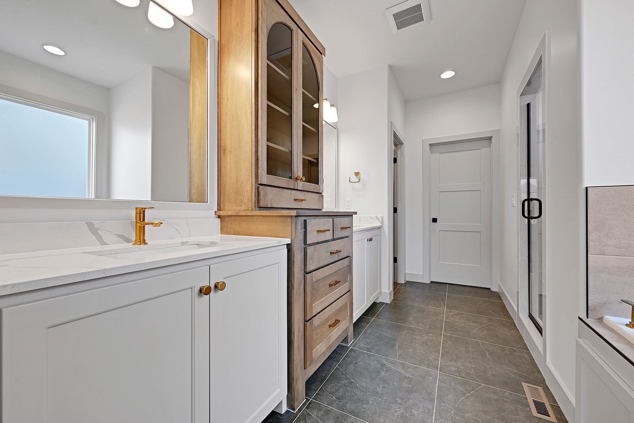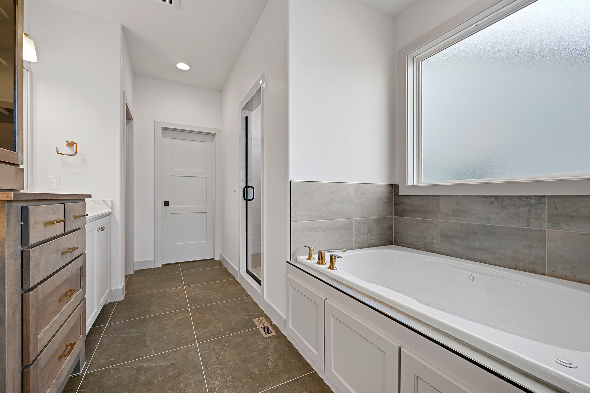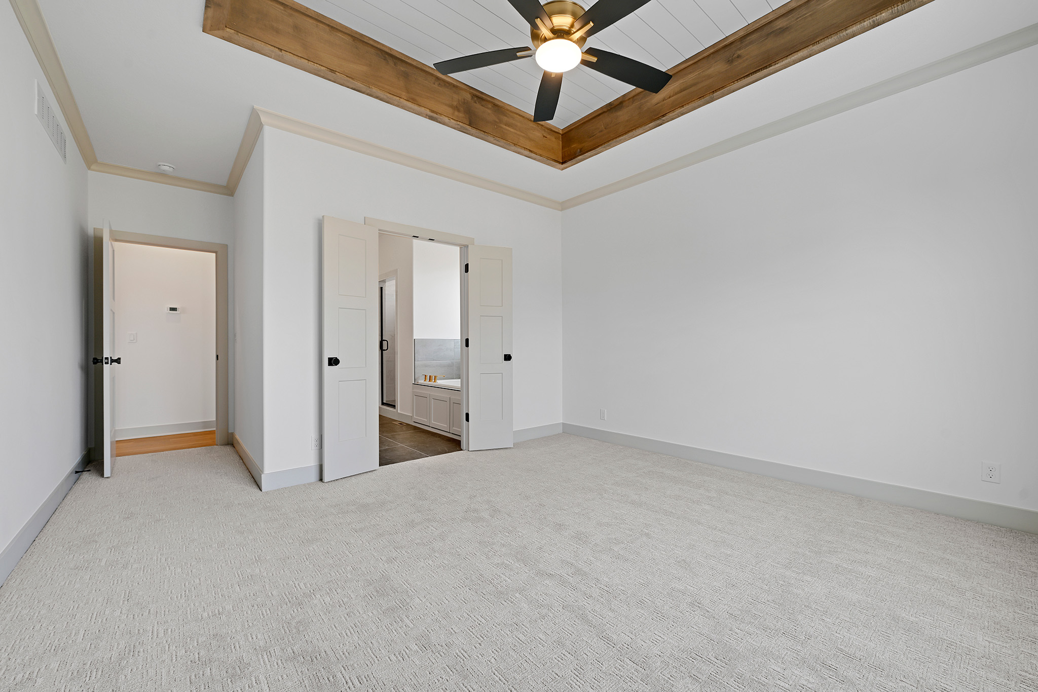- Private master suite with spacious tiled shower, and walk-in closet
